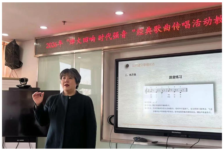 为扎实推进红色文化进校园,提升中小学教师合唱指导与经典歌曲传唱能力,2026年3月20日,丰台区2026年“烽火回响 时代强音”经典歌曲传唱教师培训在北京市丰台区东高地青少年科技馆顺利举行。本次培训面向成石学区、东南和学区及相关学校音乐教师,上午9点在科技馆本部二层203室正式开课,以专业赋能、实践交流助力红色美育落地课堂。