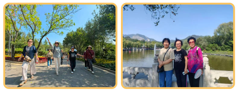 采摘结束后,老教师们走进北宫国家森林公园,瞬间被园内层林尽染的秋色所吸引。大家沿着平缓的步道徐徐前行,或三五成群,漫步于林间小径,欣赏“小江南”的秀丽风光;或驻足凉亭,凭栏远眺,呼吸着富含负氧离子的清新空气,畅谈退休生活的点滴趣事。他们精神矍铄,谈笑风生,不时用手机或相机记录下这醉人的秋景与老友重逢的欢快瞬间,仿佛回到了充满活力的青春年华。